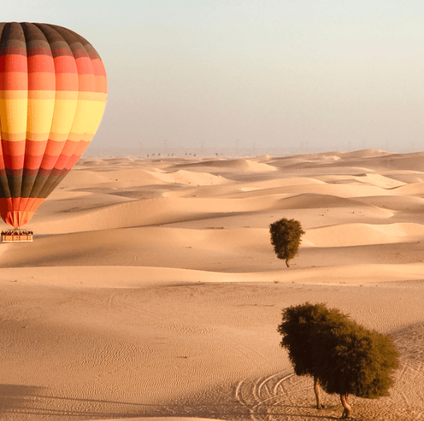Soar above the Dubai desert at sunrise in a magical hot air balloon ride. As you glide peacefully over the golden dunes, you’ll witness breathtaking views of the vast desert landscape and might even spot native wildlife such as oryx and camels below. This experience offers a serene, unique perspective of the Arabian wilderness, far removed from the hustle of the city.